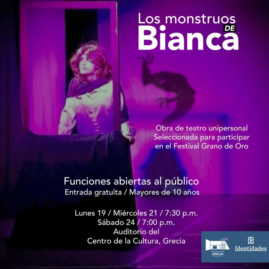 La propuesta de la artista Corella es una obra corta unipersonal escrita y montada por ella misma con la guía del director escénico de XibalbaLog producción, llamada “Los monstruos de Bianca” que trata de un drama psicológico sobre el envejecer y la forma que se enfrenta esta ineludible realidad.