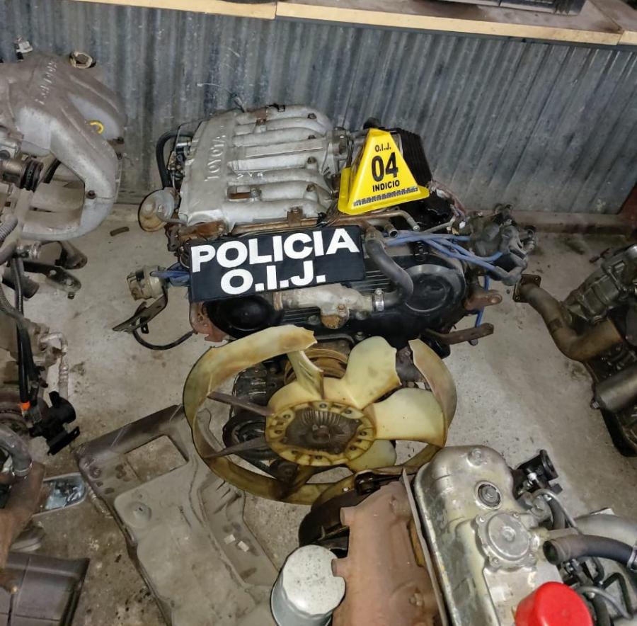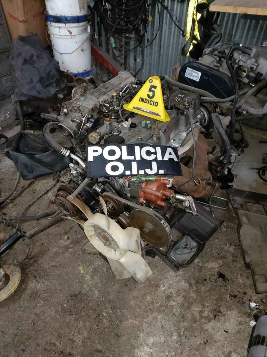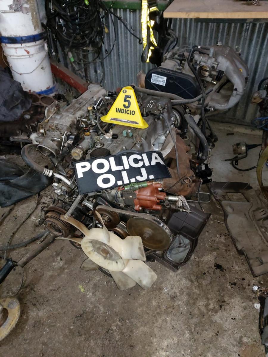 Los agentes del Organismo de Investigación Judicial (OIJ), destacados en la Sección de Robo de Vehículos, allanaron este martes una venta de repuestos en el sector de La Guácima donde lograron ubicar un carro denunciado como robado, así como otras partes de vehículos con alteración de señas y marcas.