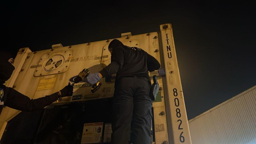 La intervención se llevó a cabo tras una inspección a través de los escáneres, que permitieron a los oficiales detectar la posible contaminación del contenedor.