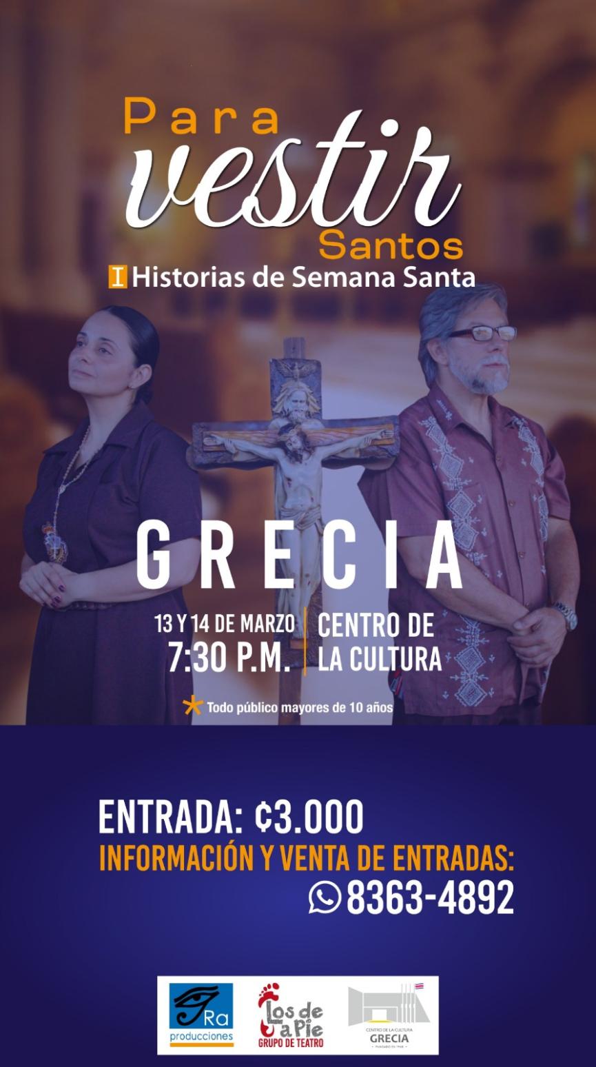 RA Producciones y Teatro Los de a Pie informaron continúan la temporada 2026 después de su gira a Tilarán, ahora presentándose los días viernes 12 y sábado 13 de marzo a las 7:30 p.m. en el Centro de la Cultura GRECIA . La entrada general tiene un costo de ¢3.000 y pueden adquirirse al número: 8363-4892.
