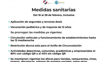 Medidas sanitarias actuales continuarán hasta el 28 de febrero