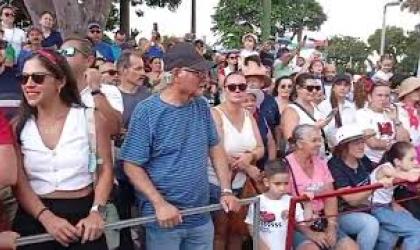 Cierre del desfile del 15 de setiembre a cargo de la Banda Municipal de Egresados de Grecia.