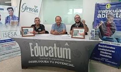 Oscar Ramirez Gerente de Educatum Internacional y Donald Quesada alcalde de Grecia firman el convenio marco de cooperación para el desarrollo del talento humano en el cantón de Grecia. . .