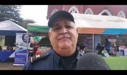 Carlos Jiménez, jefe de la Fuerza Pública de Grecia se refiere a la feria de la Salud, Prevención e Información que se realiza en el boulevard del parque de Grecia