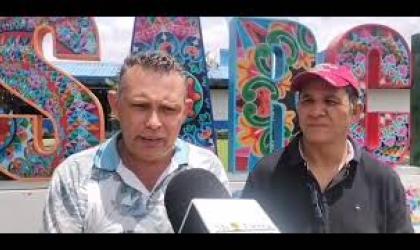 Danilo Rodríguez, promotor y Carlos Quesada integrante de la junta directiva de la Asociación de Desarrollo de Sarchí Sur se refiere al mercado de pulgas que se realiza el primer sábado de cada mes.