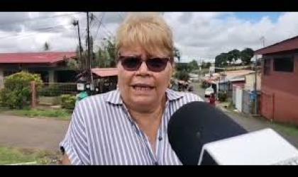 Leda Morales vecina de Calle Los Lecheros, en el Poró se refiere a la visita de personeros del MOPT y Municipalidad. Vecinos manifiestan que de no obtener una respuesta pronta al problema del alcantarillado estarán tomando medidas como bloquear la ruta na
