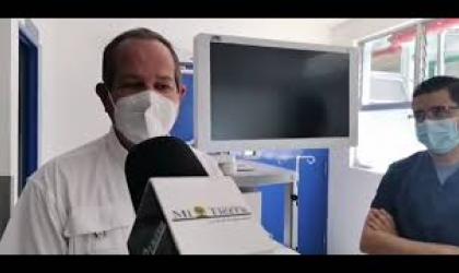 Martín Alfaro, presidente de la Asociación Pro Hospital San Francisco de Asís y Roberto Quijano, doctor especialista en otorrinolaringología se refieren a la donación de equipo por parte de la Junta de Protección Social.