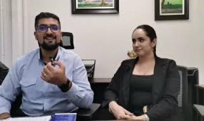 Anthony Murillo asesor de la alcaldía y Cristal Fernández funcionaria de la U San José se refieren a entrega de certificados para la población griega