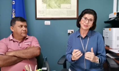 Leda Ramírez directora del Área de Salud de Grecia y Francis Suárez síndico de Tacares se refieren a la situación del Ebais y al aumento de casos de dengue en ese distrito.