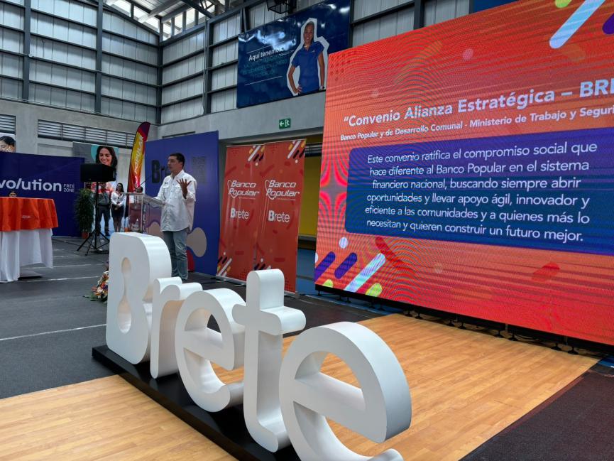 También se contó con la participación y apoyo, por primera vez como socio estratégico de Brete, del Banco Popular y de Desarrollo Comunal. Su gerente general, Gina Carvajal, ratificó a los presentes la confianza del Banco en el talento y las ideas cada persona joven y de cada mujer que anhela forjar un mejor futuro, sobre la base de la educación y el esfuerzo.