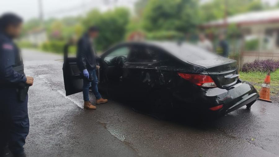La Fuerza Pública fue alertada del hecho y realizó un cierre de carreteras con el fin de ubicar un vehículo negro en el cual escapó el sospechoso. Minutos después, fue observado por lo agentes quienes le dieron la señal de alto; sin embargo, el conductor hizo caso omiso, por lo que los policías a bordo de una unidad policial lo siguieron y con otra que venía dando apoyo lograron detenerlo.