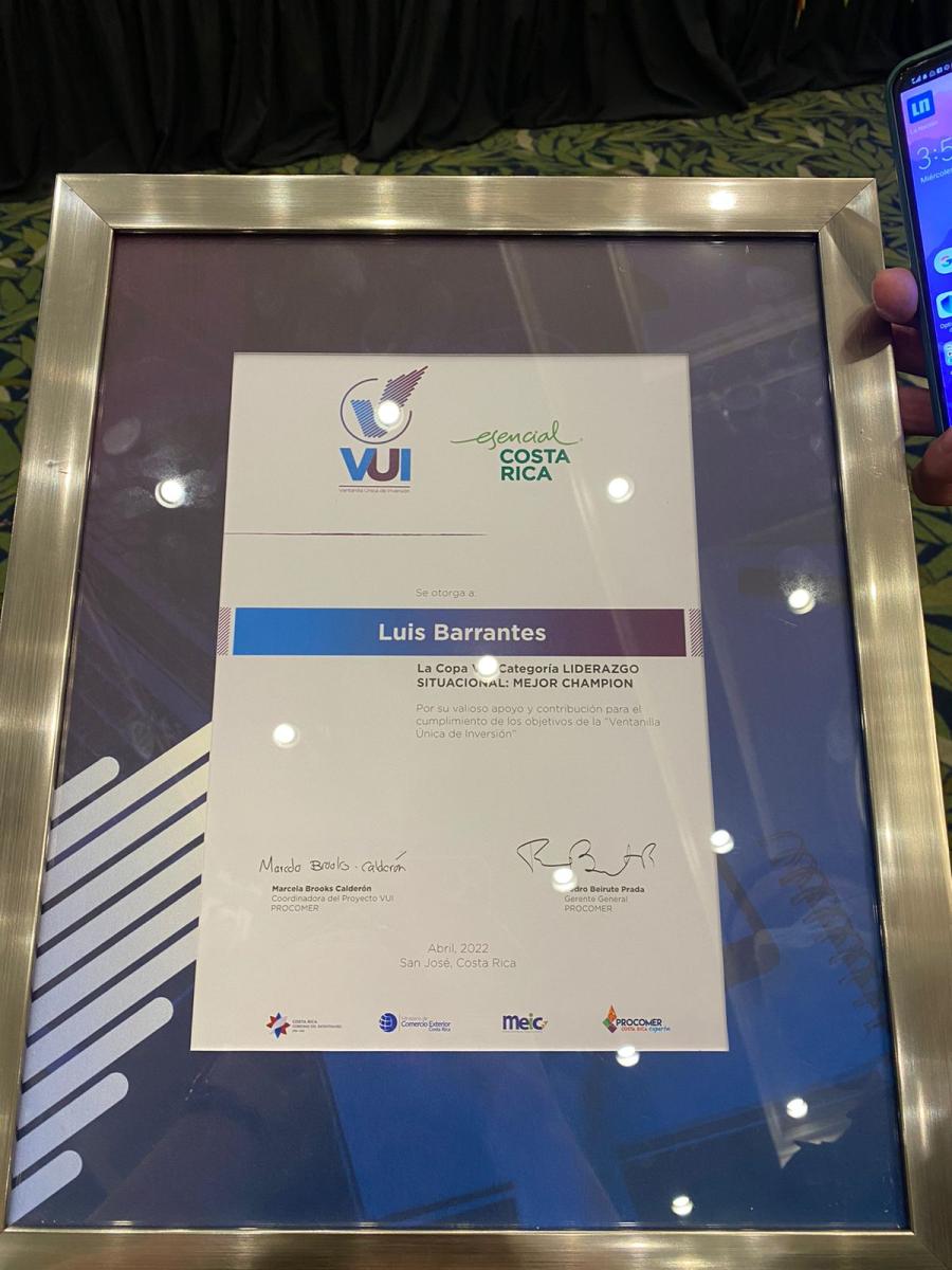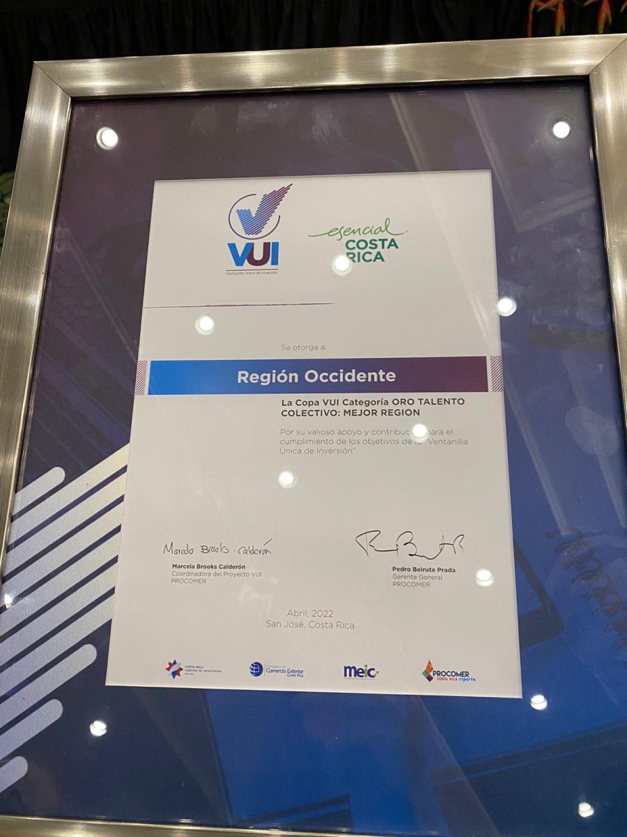 Al mismo tiempo, Luis Barrantes, director ejecutivo de Fedoma, recibió un homenaje como líder ejemplo y la región de Occidente, obtuvo un reconocimiento de oro por los avances en la implementación de VUI