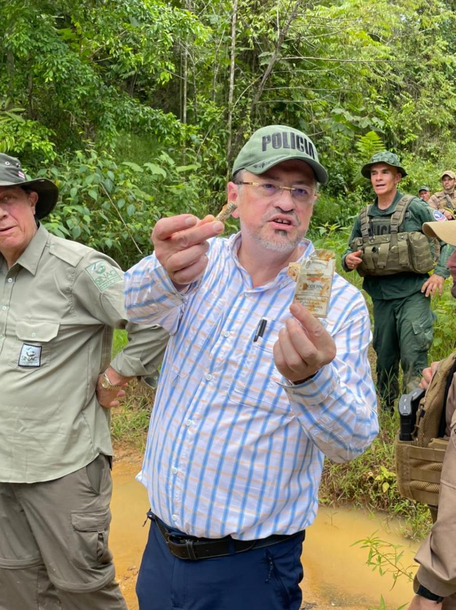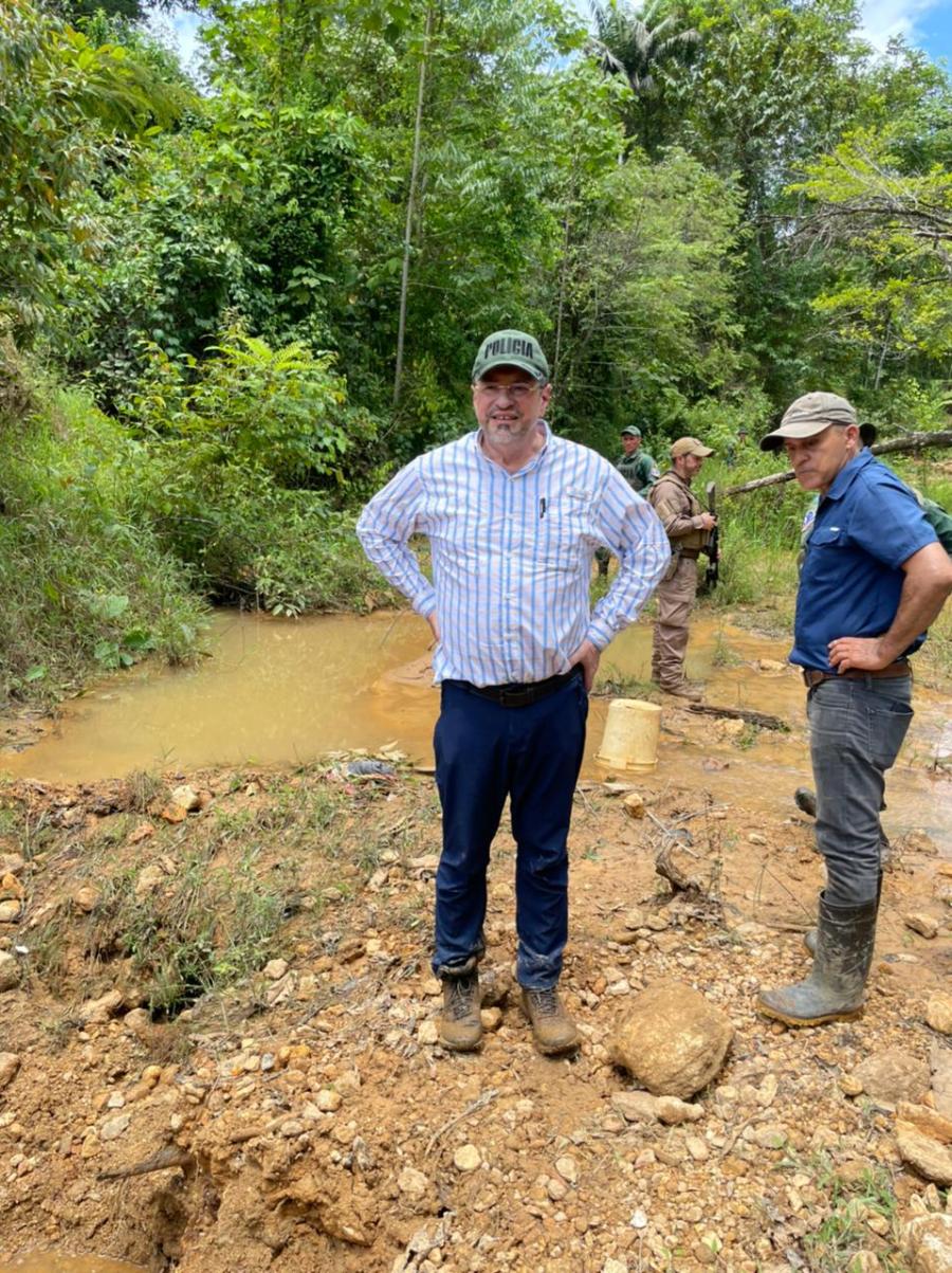Posterior a la reunión con los vecinos de Cutris de San Carlos, el Presidente hizo el recorrido por una finca en la cual los coligalleros crearon una serie de túneles para hacer la extracción ilegal de oro.
